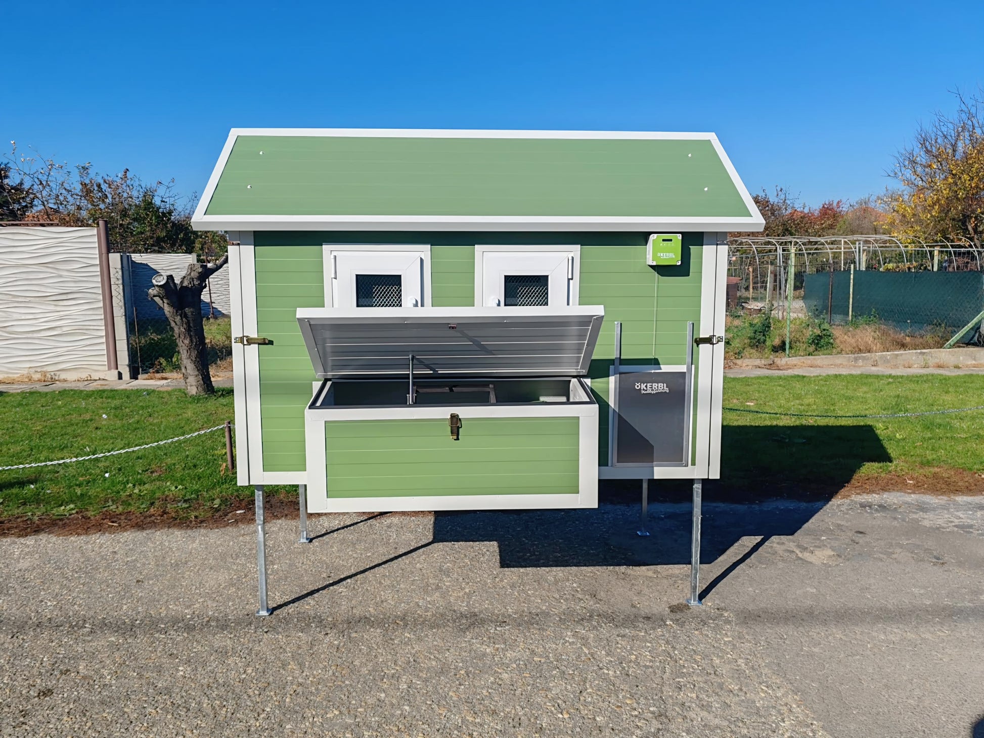 Automatische Hühnerklappe Kerbl 30 x 40 cm / Lackierte Konstruktion / RAL 6011 Resedagrün