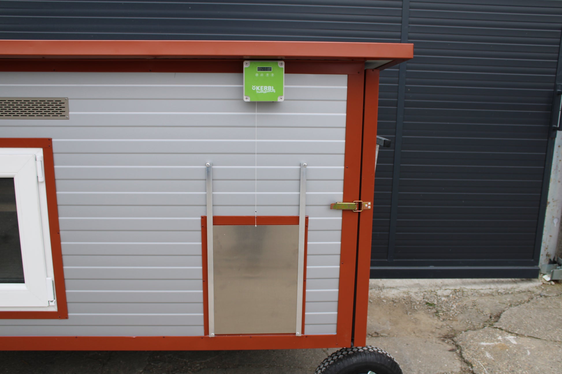 Automatische Hühnerklappe Kerbl 30 x 40 cm / Lackierte Konstruktion / RAL 9002 Grauweiß