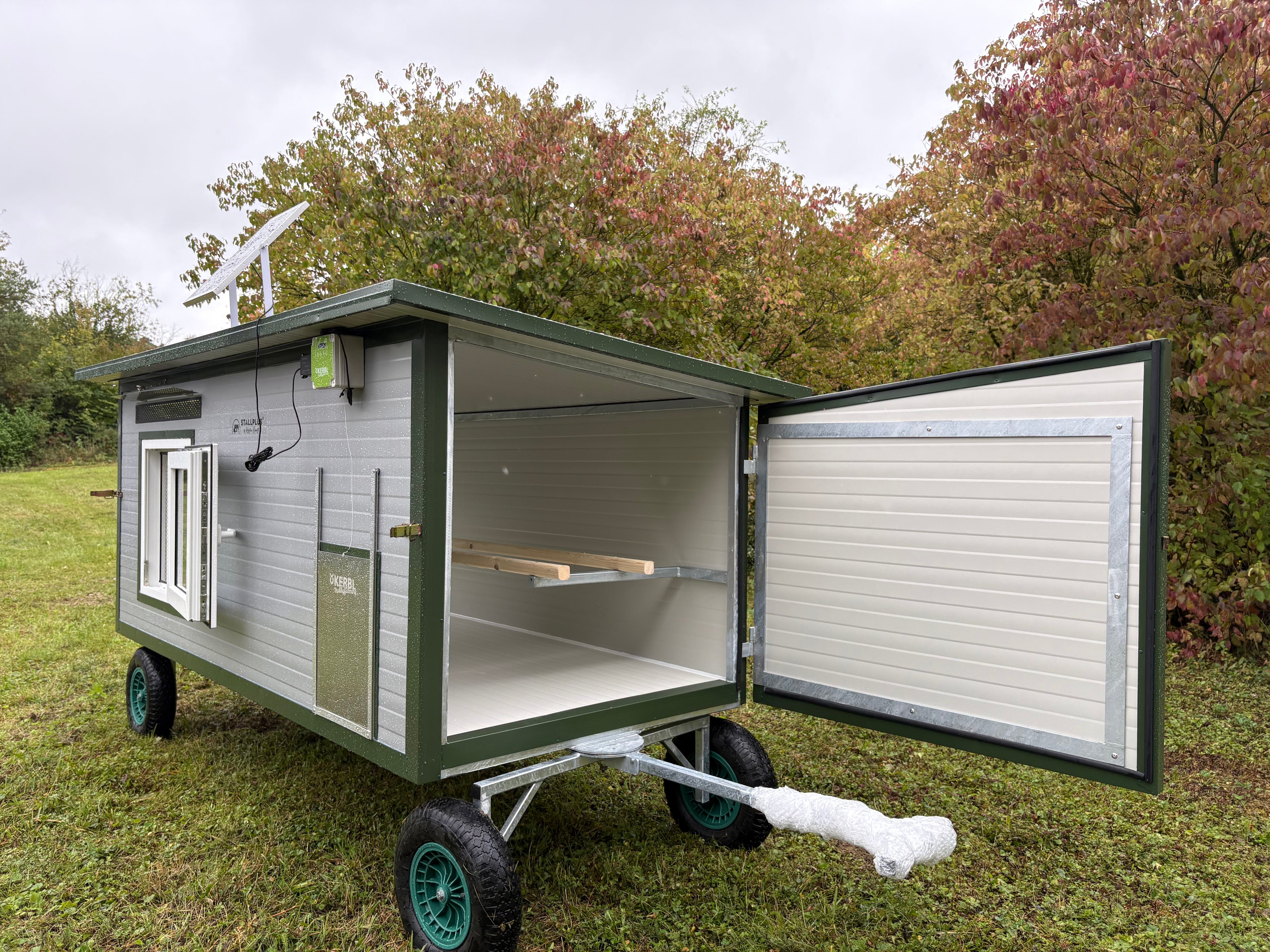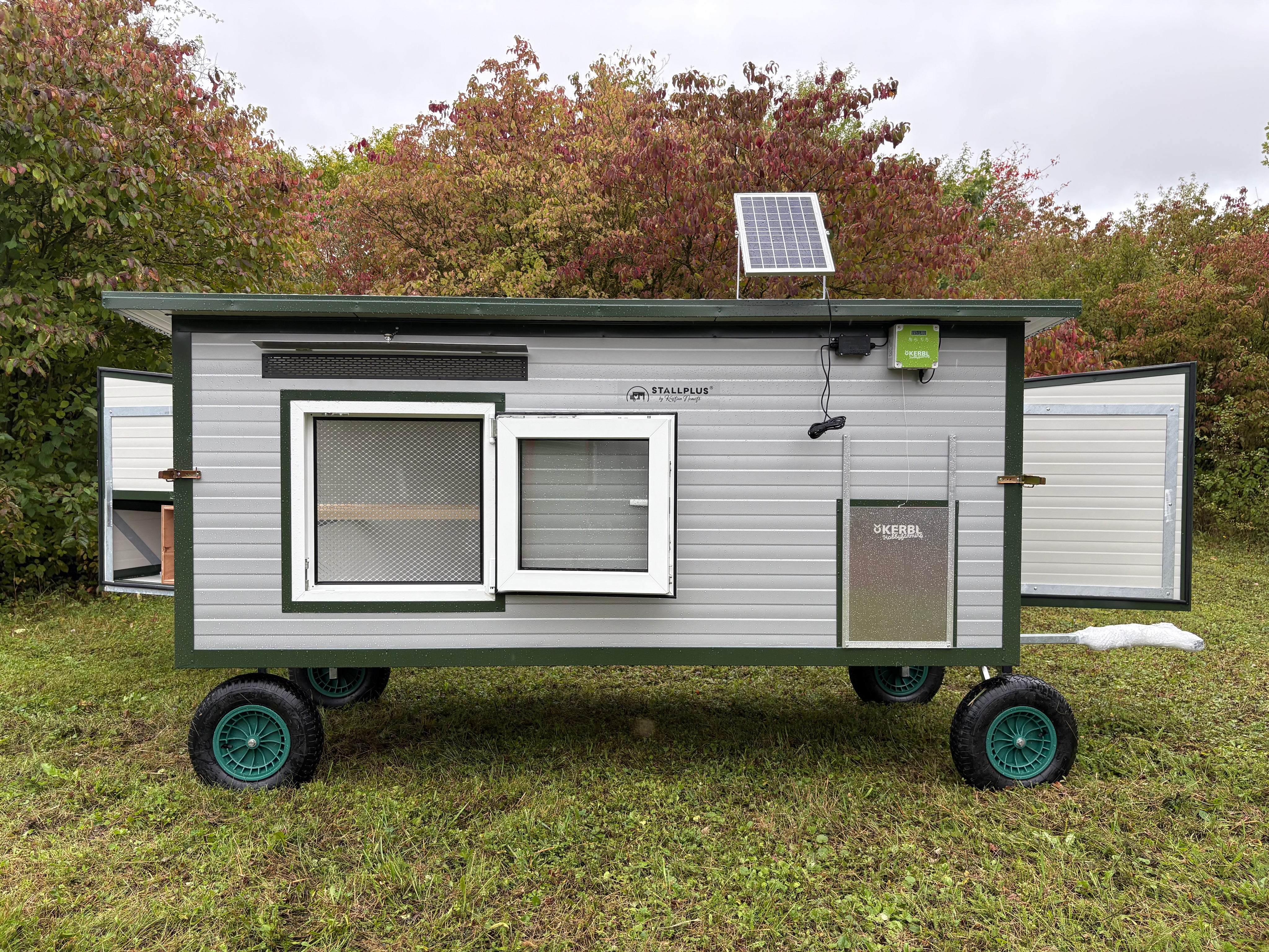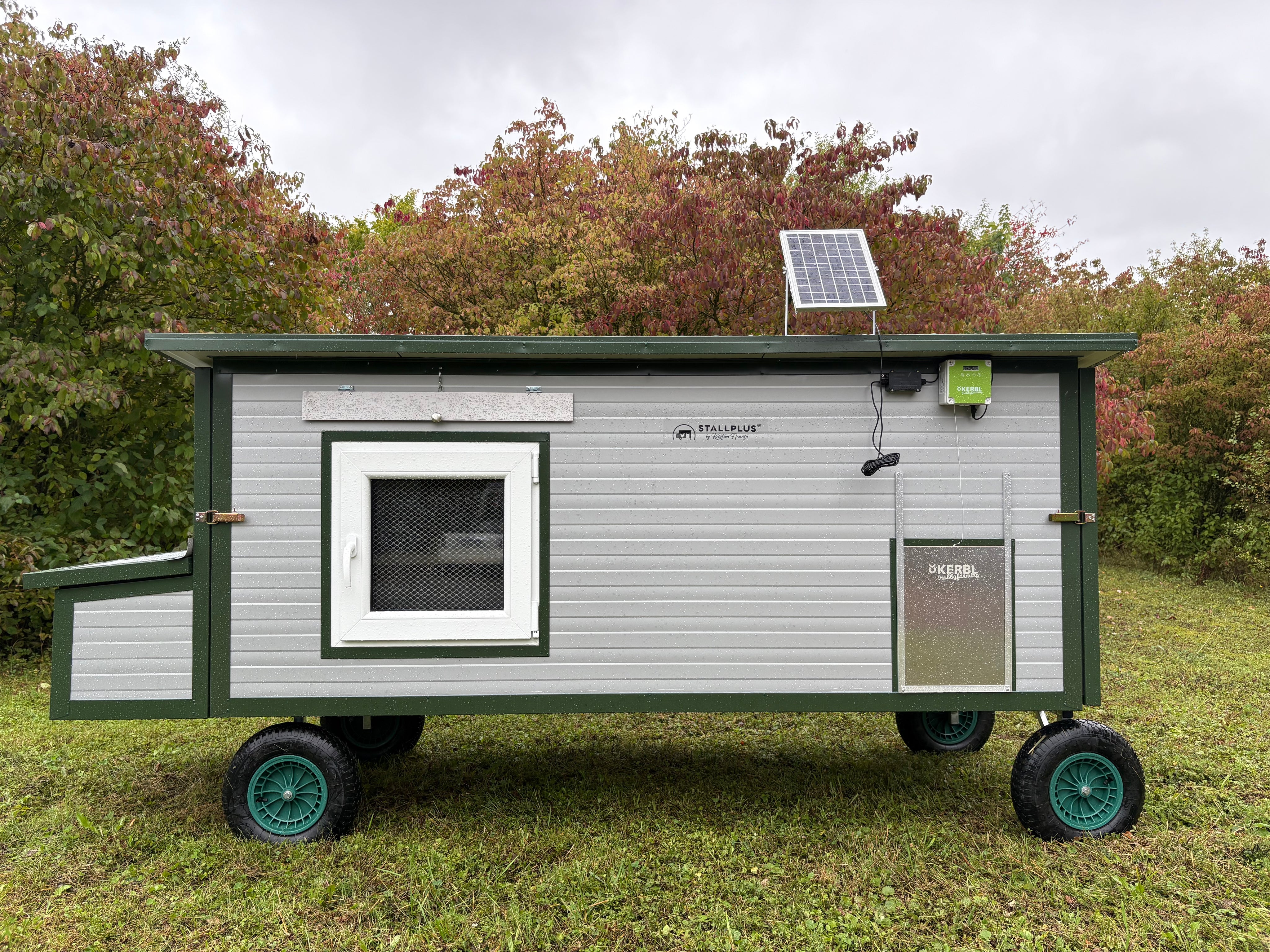 Wie Abgebildet aut. Hühnerklappe Kerbl 30 x 40 cm inkl. Solar / Feuerverzinkte Konstruktion / RAL 9002 Grauweiß