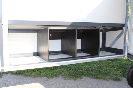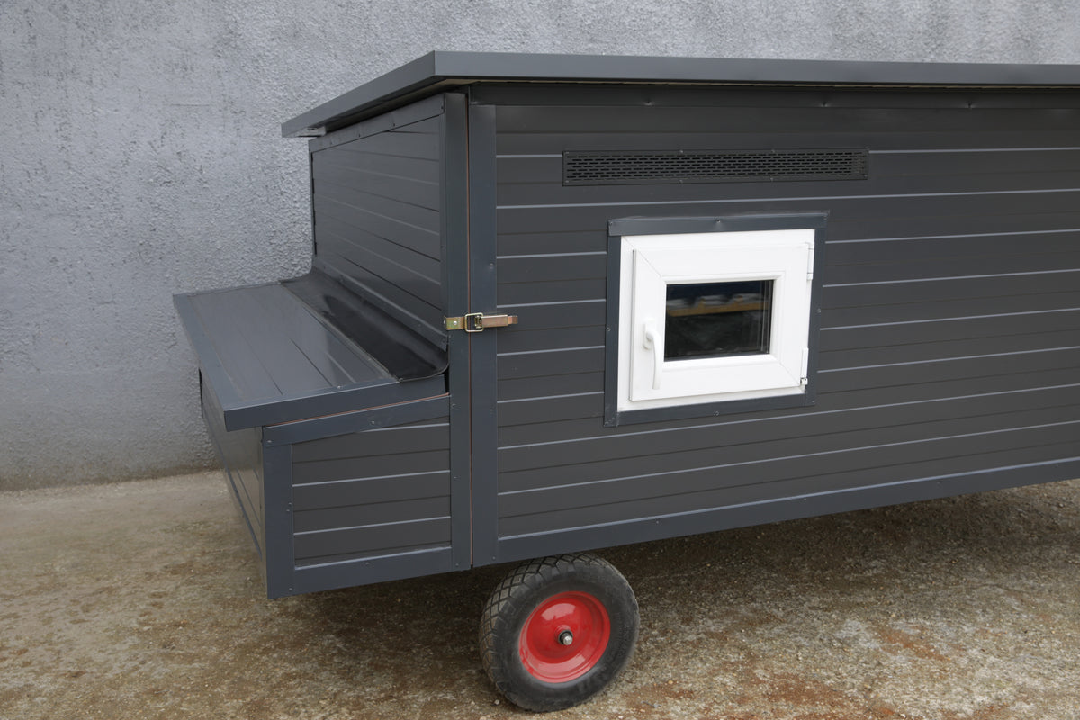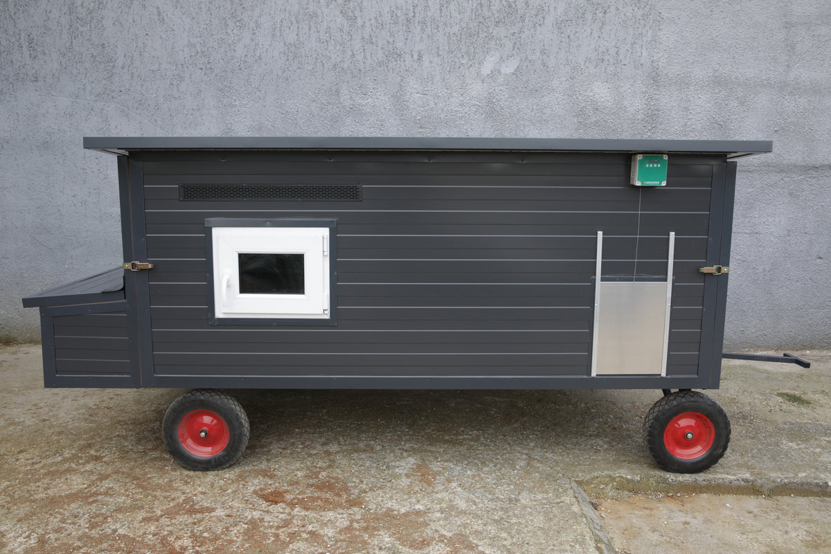 Hühnertüröffnung angepasst für JOST-Technik Klappe / Lackierte Konstruktion / RAL 7016 Anthrazitgrau