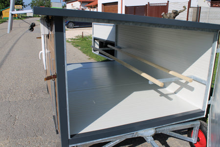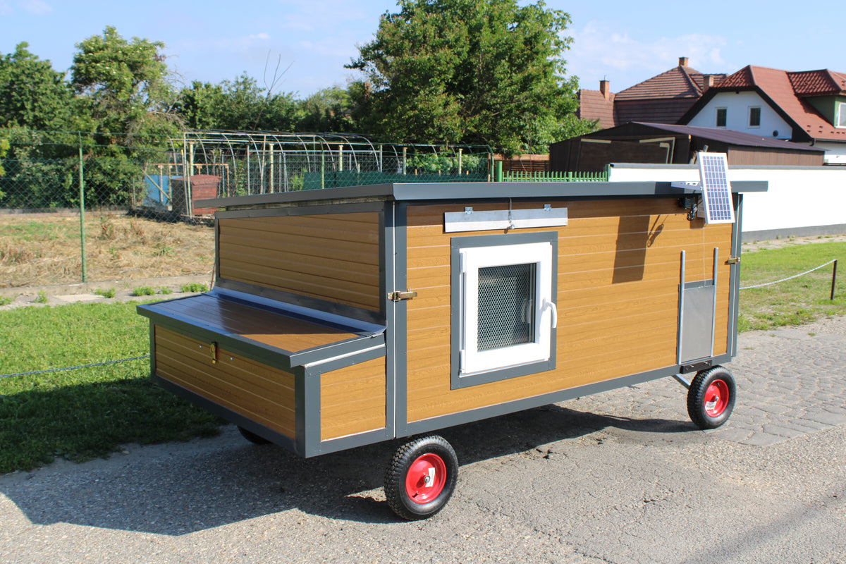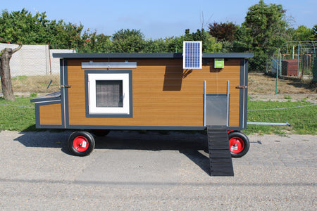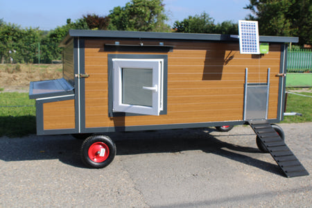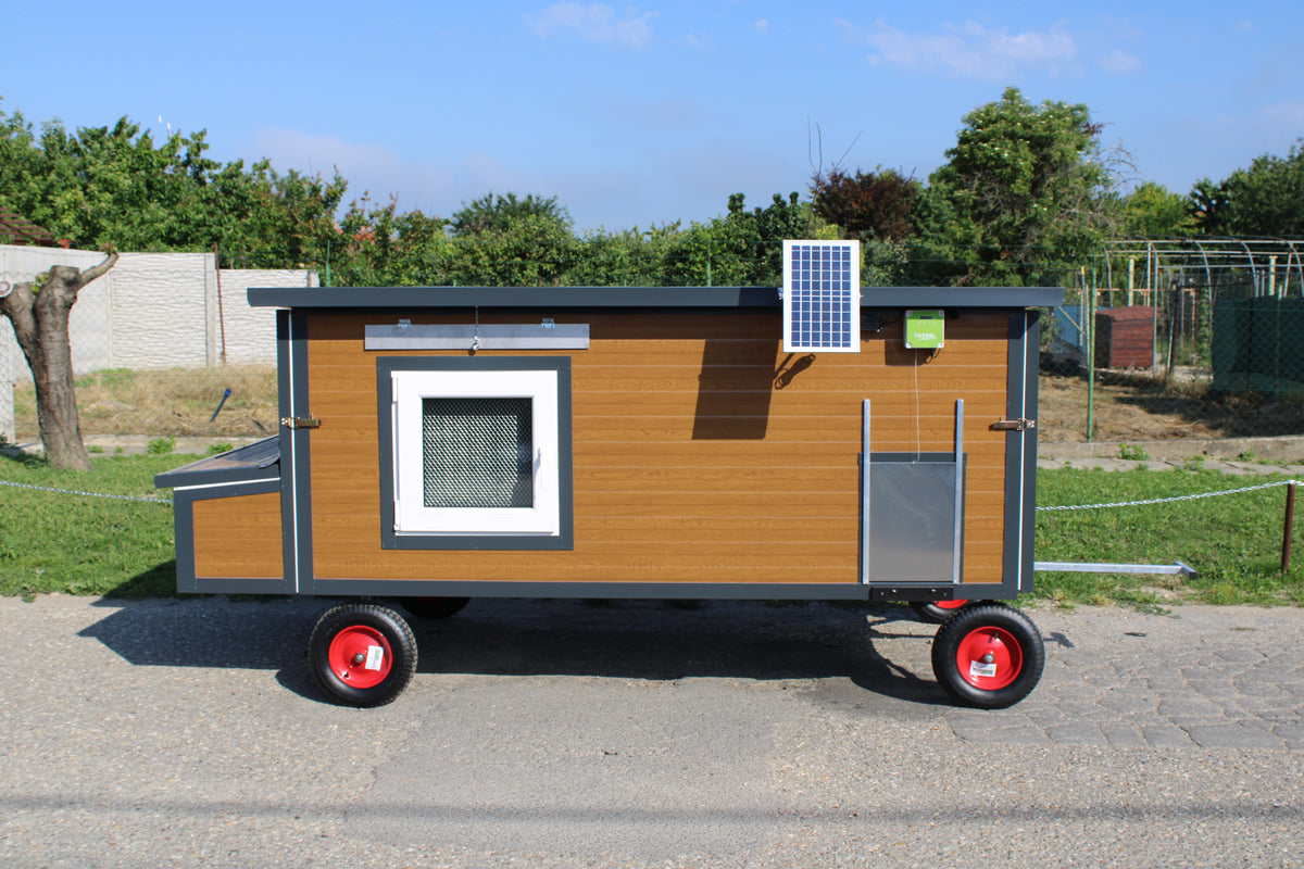 Hühnertüröffnung angepasst für JOST-Technik Klappe / Lackierte Konstruktion / RAL Holzoptik Buche