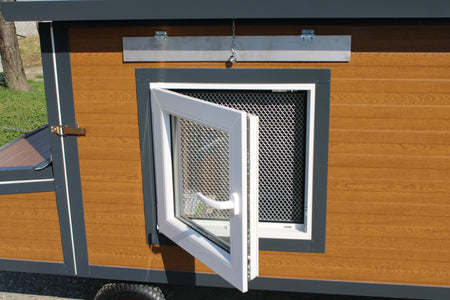 Hühnertüröffnung 30 x 40 cm / Lackierte Konstruktion / RAL Holzoptik Buche